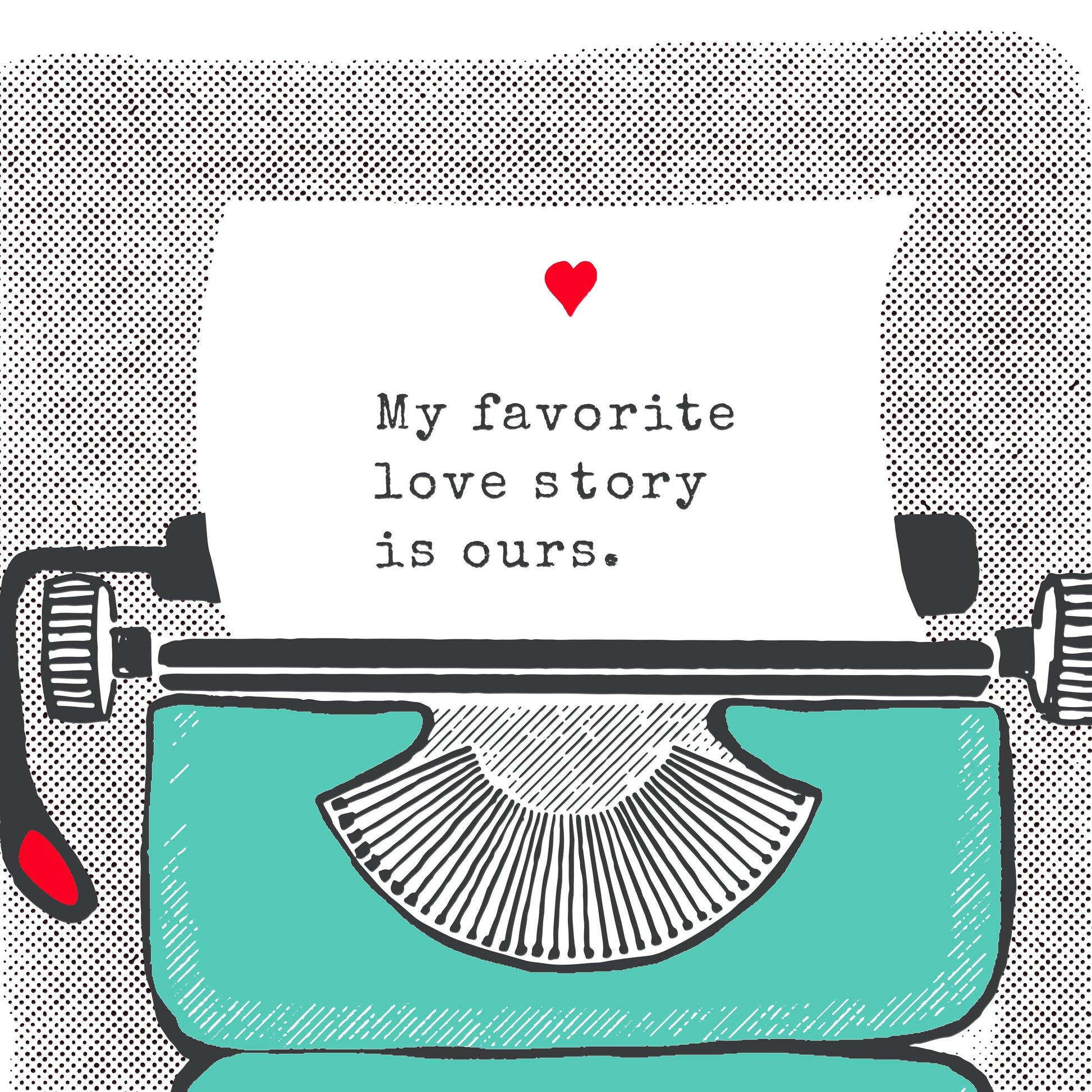 A vintage typewriter spells out "My Favorite Love Story is Ours."