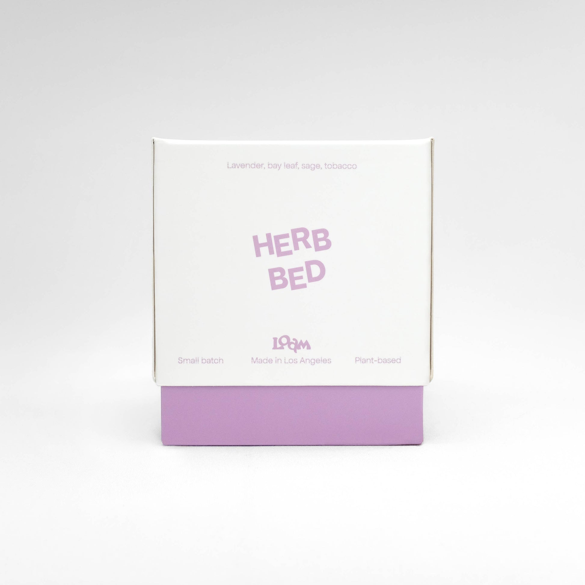Scent notes: lavender, grey sage, tobacco, leather, and bay leaf Bundles of shrubby branches. Fragrant and sticky hands. A kitchen filled with the freshness of the earth. Herb Bed brings home the magical woody and herbaceous scent of homegrown, newly harvested herbs. Airy lavender, hazy tobacco, and dry and herbal sage come together to form a relaxing and contemplative scent. The vibe: herbal, smoky, meditative, fresh, calming, warm Every candle is crafted in small batches with coconut soy wax and 100% cotton wicks. Loam candles are always paraben, paraffin, petroleum, and phthalate-free.
