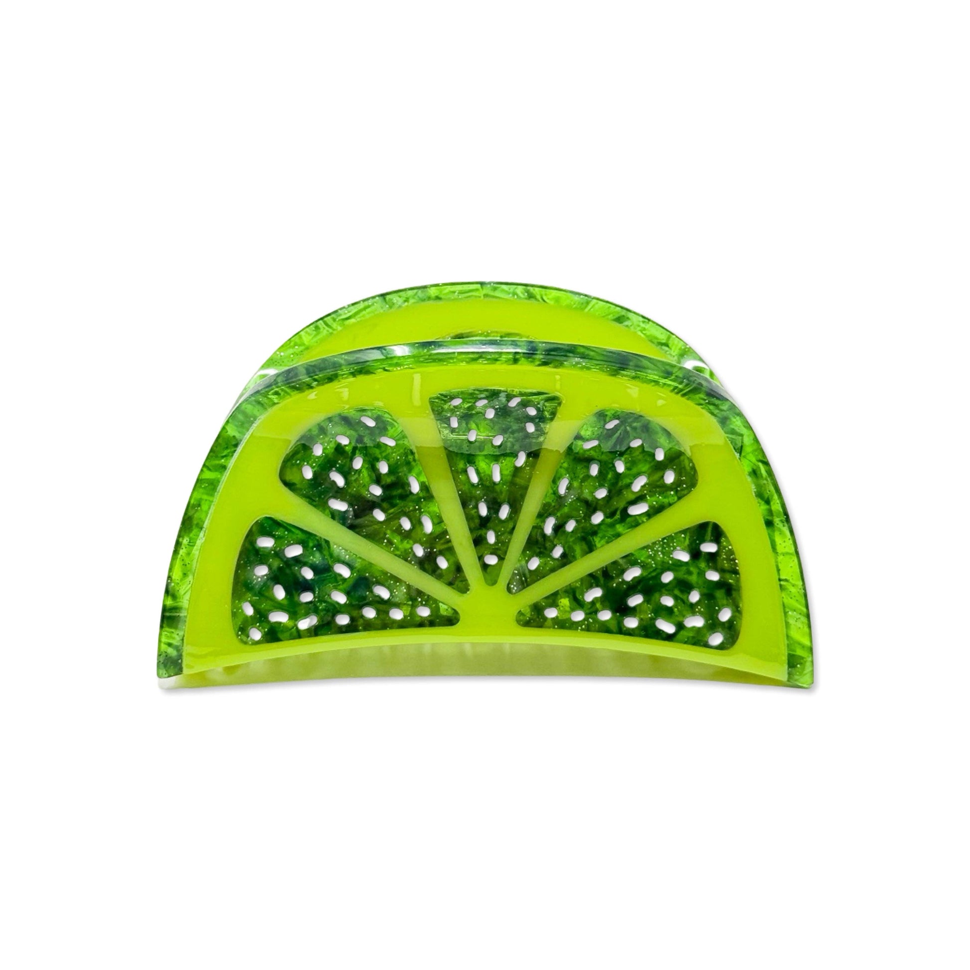 Freshen up your look with the Large Lime Slice Hair Claw Clip by Jenny Lemons—vibrant, sturdy, and perfect for securing thick hair or styling bold updos. A citrusy statement piece, available at Dear John in Oakland.