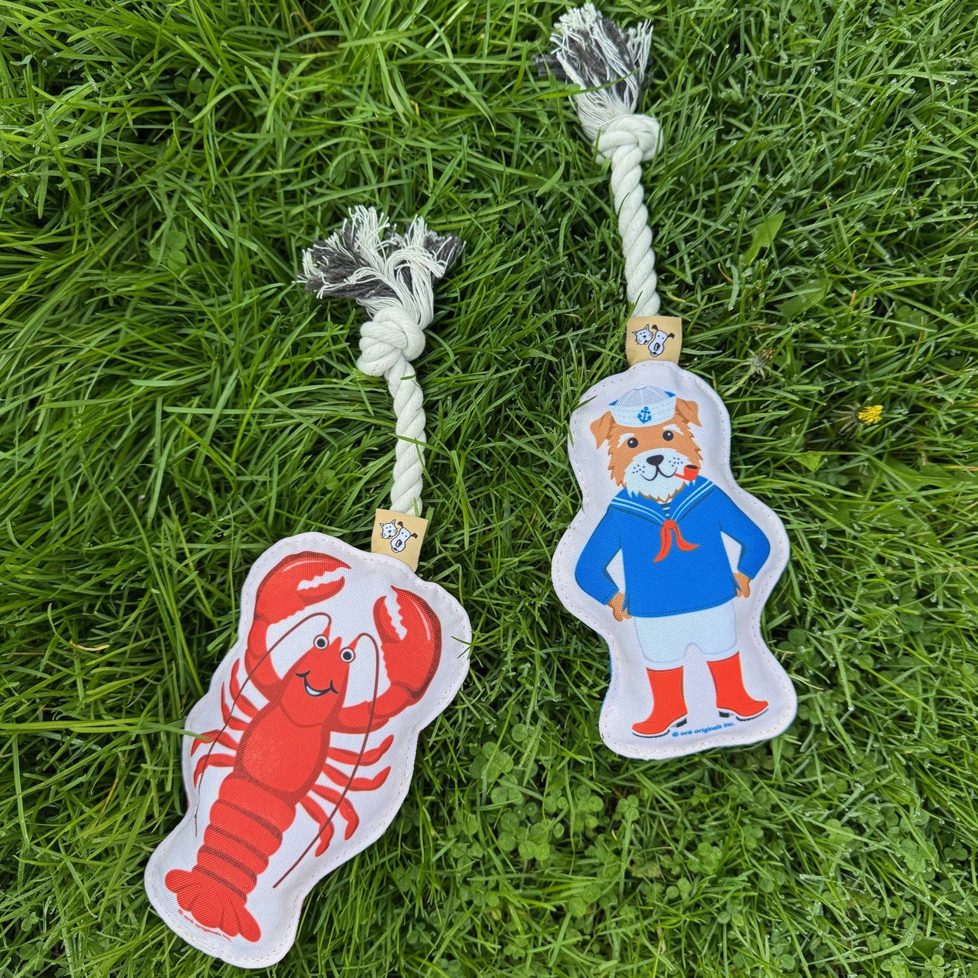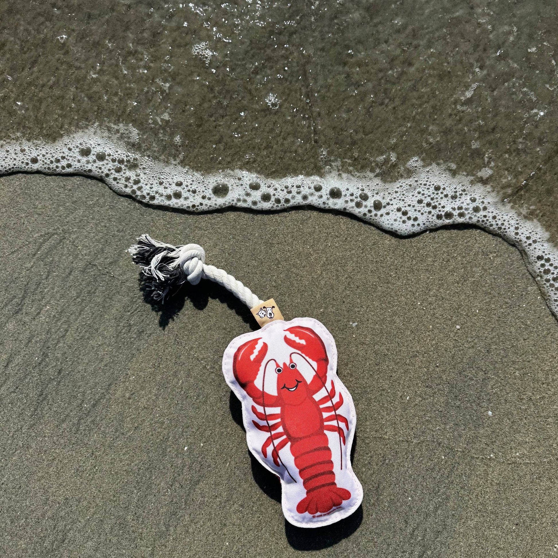 Canvas lobster design with cotton rope claws for satisfying tugs