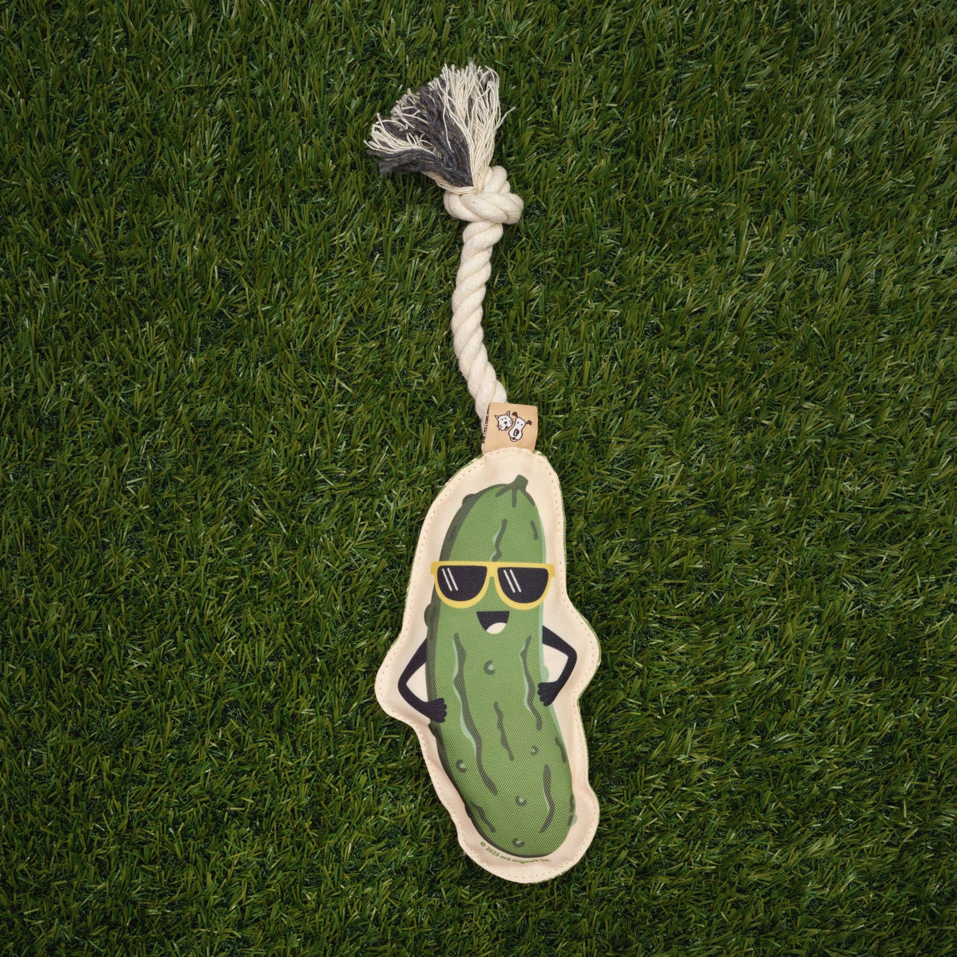 The Pickle Dog Toy is the perfect gift for your favorite pup! Our Tug & Fetch toys are fun for your dog, perfect for holding or throwing, and look stylish lying around the house awaiting playtime. Size (inches): appox. 5 .00 w x 1.50 d x 12.50 h Design Features: * Canvas toy with cotton rope * The rope handle makes a nice handle and easy to throw * Dogs love the cotton rope texture * The back features fun graphics with clever sayings * Includes inner squeaker * Always supervise your dog while playing Care: * Spot clean by hand * Line dry * Have fun!