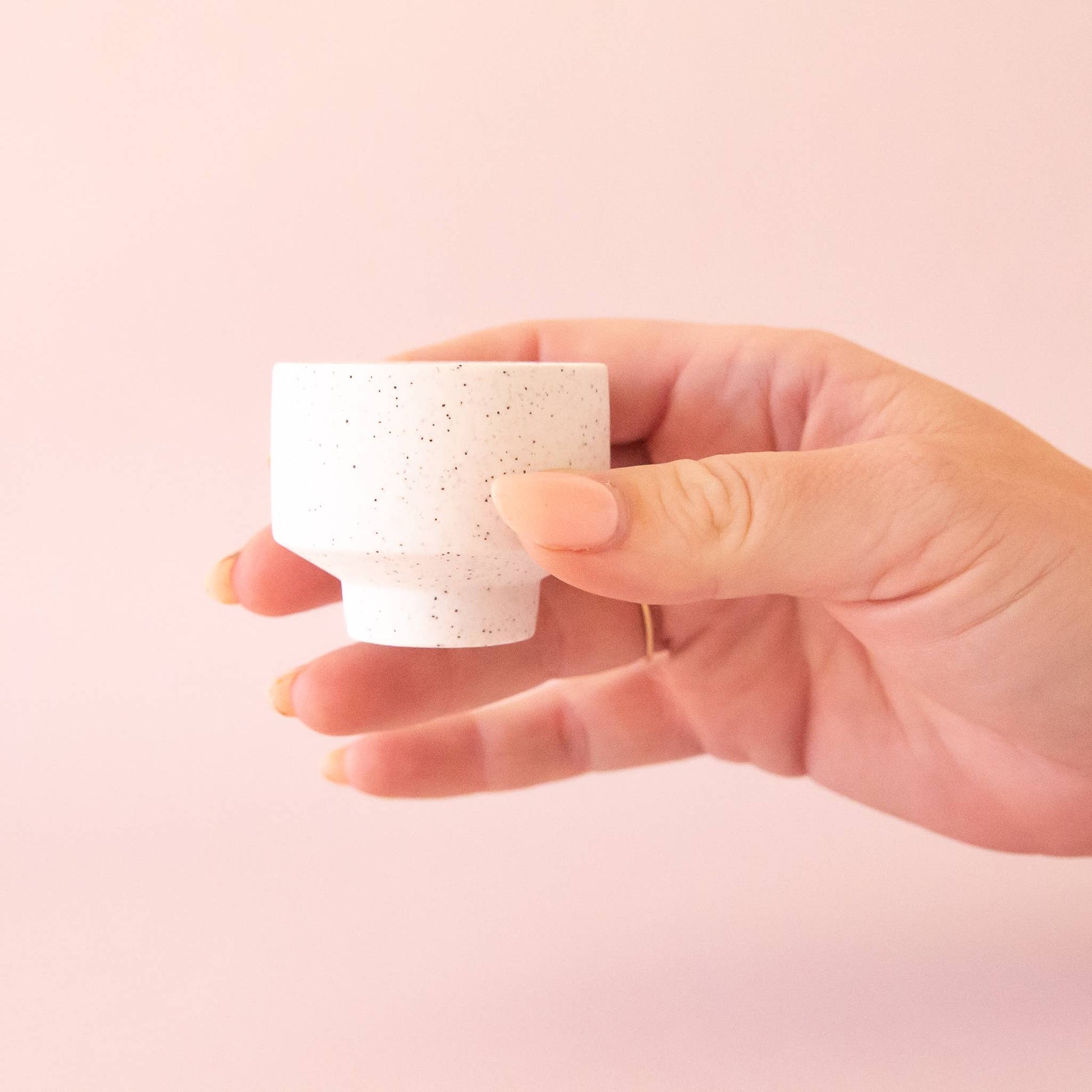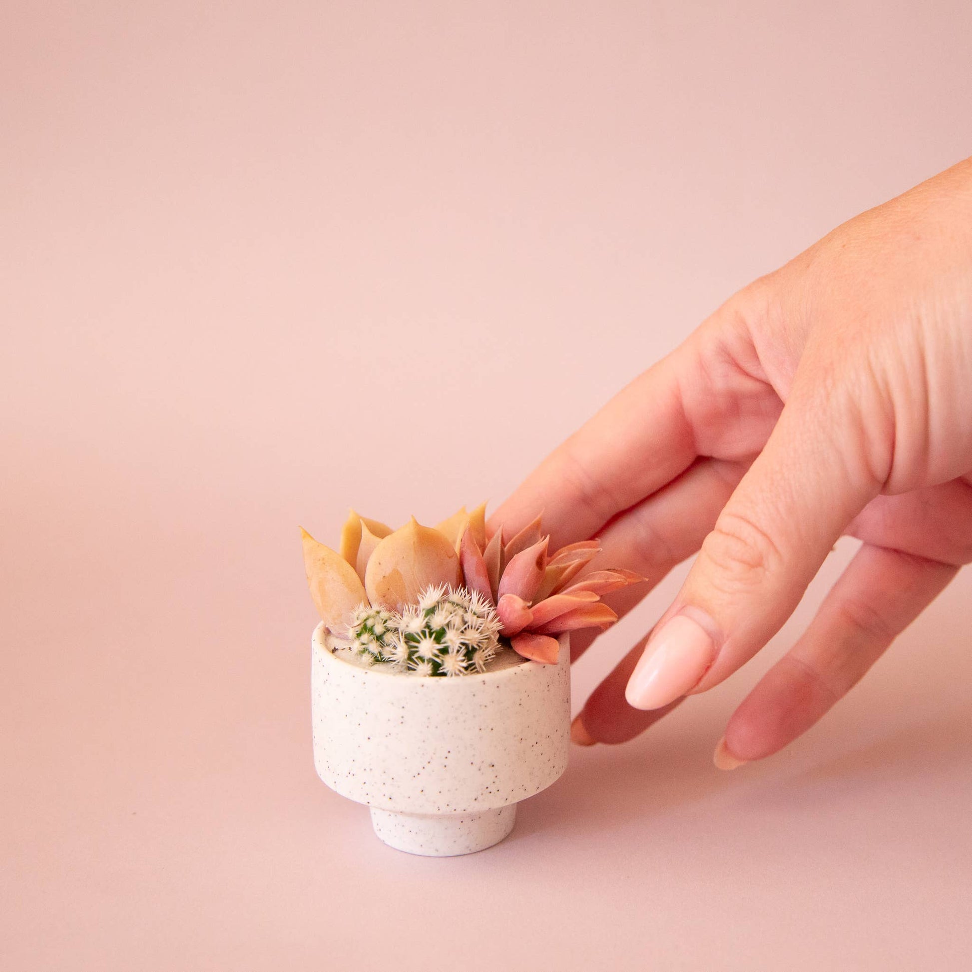 The mini version of our loved Speckle Footed Pot is defined by its footed base and speckled finish. This ceramic pot will elevate your plantings. Its minimalist design is one we just can't get enough of. Inspired by the garden, Jungle Club is the place to shop for all aesthetically curated planting items. You can find an array of original products for any plant lover, including stationery, tools, wares, and of course plants! . Size | 2"W x 1.5"T . Imported